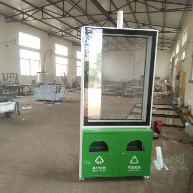 ? 公交站臺廣告垃圾桶生產制作常用的材質有冷軋鋼、不銹鋼、玻璃鋼;產品造型經典時尚,整體結構牢靠,箱體箱底連體式設計,底座可固定地上,抗打擊,抗風力。控制箱體高度,廣告桶高度設計在1.8米左右,符合城市規劃要求。獨特的抽屜式斜插內桶減輕環衛工人清理勞動強度,投口與清理口一體設計,便于垃圾入箱及清理。廣告垃圾箱具有投入成本低,直接受眾效果好。