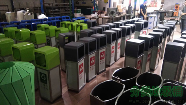 這批垃圾桶是供商場及其附近的商業街適用,適用鋼板材料,外表烤漆成綠黃紅藍四色,分別代表廚余垃圾,其他垃圾,有害垃圾,可回收垃圾,分類明確詳細,有利于人們垃圾分類減量。由于采用鋼板烤漆材料,所以垃圾桶防水防曬防腐蝕,再加上其本身的外觀設計大方典雅,所以室內戶外都能夠適用。