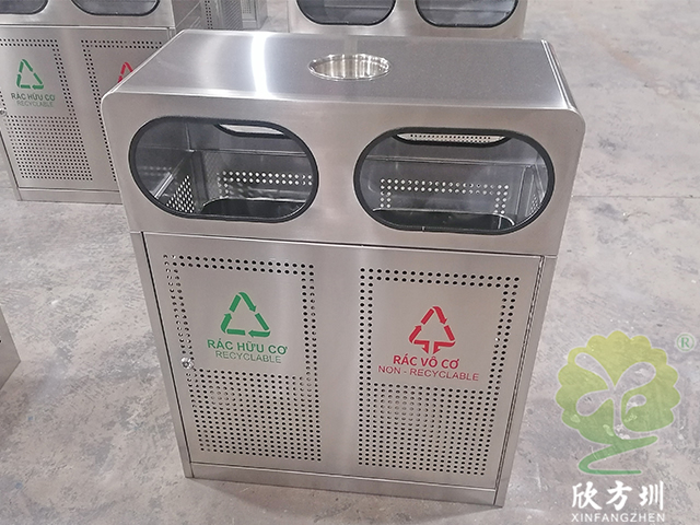 戶外沖孔不銹鋼分類垃圾桶因其堅固耐用、易于清潔、分類明確且符合環保標準,成為越南市場的熱門選擇。