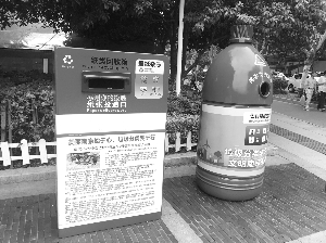 ? ? 而它隔壁的“兄弟”——超大的藍(lán)色飲料瓶,更是提醒大家,這是專門投放飲料瓶的回收箱。上面有個圓形的投放口,同時標(biāo)注了投放可樂瓶、果汁類瓶、礦泉水瓶、純凈水瓶等。