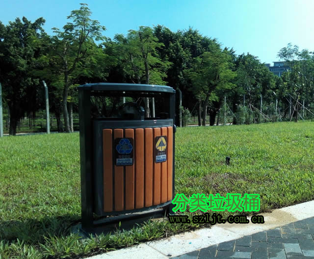 優質鋼木垃圾桶精挑細選優質進口山樟木,經過除蟲、防蟻、防腐,烘干處理后加工成型。表面采用優質戶外高分子漆噴涂,形成可靠防護層,使其戶外使用具有耐候持久,不易破裂、變形、腐爛、蟲蛀等優點,歷久彌新。支腳乃優質方通,所有工件均進行整體除油、除銹,表面酸洗、磷化等專業處理,表面再經雙層戶外級優質雙層靜電噴粉處理,確保產品歷久彌新.具有美麗的外觀,別致的造型,高檔的形象,適用于高檔花園小區、公園、學校等場所。