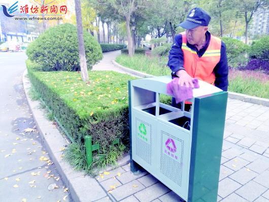 環(huán)衛(wèi)工人說,這里是交通要到,以前垃圾桶很多,但是使用頻繁、陳年失修,老化嚴(yán)重,很多都出現(xiàn)了不同程度的破損,而他正在擦拭的這個而垃圾桶,是不久前剛剛換的新垃圾桶、