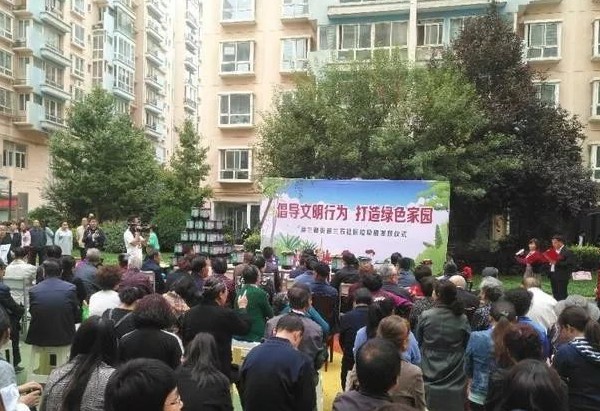 9 月 19 日下午,蘭州市七里河區(qū)建蘭路大街蘭石社區(qū)在陽光家鄉(xiāng)玫瑰園小區(qū),舉辦了 " 倡議文明行為,打造綠色家鄉(xiāng) " 分類垃圾桶發(fā)放儀式。