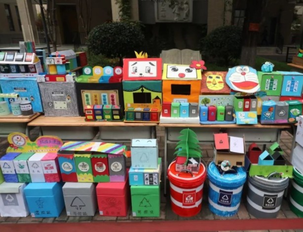 據了解,本次分類垃圾桶親子設計大賽是為了幫助學生更加深入地理解生活垃圾分類的內涵和意義,引導學生在實際生活中踐行垃圾分類理念,特組織二三年級學生開展了家長與學生共同參與的分類垃圾桶設計大賽,旨在設計中激發創新思維,在制作過程中鍛煉動手能力。最終,共收集到200余件參賽作品,學生們的作品個個精美逼真,理念新穎。這些作品還在校園內展出供學生們瀏覽、學習;同時在“白家口社區垃圾分類宣傳活動”中向社區群眾展示,得到了群眾們的一致好評。