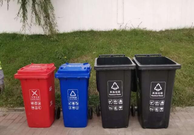 我市目前實施垃圾三分類,即有害垃圾、可回收物、其它垃圾,待我市餐廚垃圾處理廠建成后,將增加廚余垃圾分類,實施生活垃圾四分類。此次投放使用的分類垃圾桶共有三種:藍色桶收集可回收垃圾、紅色桶收集有害垃圾、灰色桶收集其它垃圾。桶的表面都印有分類的標志和指示。其中灰色垃圾桶比較多,因為居民日常生活中產生較多的其它垃圾。