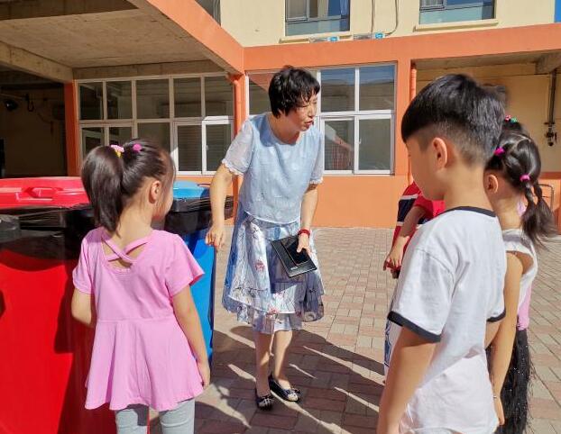 1、老師作為活動的組織者,帶領學生實地認識垃圾分類標識,宣講垃圾分類的方法和意義。