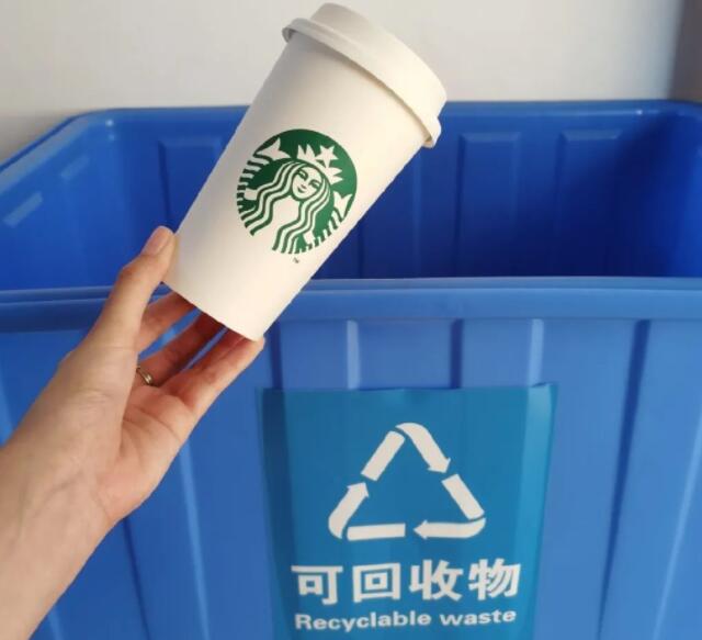 紙杯,塑料杯和杯蓋扔進(jìn)可回收物桶