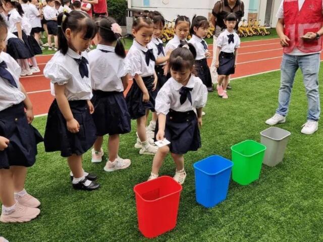 活動上,垃圾分類宣傳員和志愿者,首先帶領小朋友們參觀了生活垃圾分類知識宣教墻,并講解生活垃圾分類小知識。  “可回收物放藍色、有害垃圾放紅色、廚余垃圾放綠色、其他垃圾放黑色”。垃圾分類宣傳員拿著四色垃圾桶,教小朋友們生活中常見的垃圾該如何分類。河湖長制專班工作人員科普了水生態保護知識,鼓勵大家從小事做起,增強節水意識。