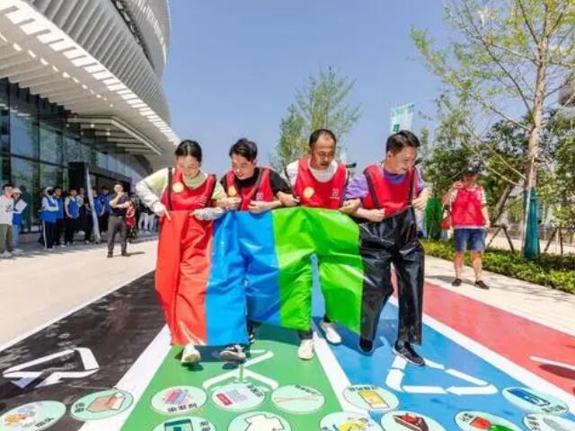 “5、4、3、2、1……”隨著大屏幕倒計(jì)時(shí)結(jié)束,分類(lèi)我最“酷”、精準(zhǔn)投放最省心、同心傳遞、垃圾分類(lèi)是新時(shí)尚等多個(gè)集趣味性、運(yùn)動(dòng)性于一身的比賽項(xiàng)目輪番上演,環(huán)保及垃圾分類(lèi)知識(shí)巧妙融入其中。寓教于樂(lè)中,20支隊(duì)伍紛紛手持任務(wù)卡依次出發(fā),奔向各個(gè)關(guān)卡,接受挑戰(zhàn)。