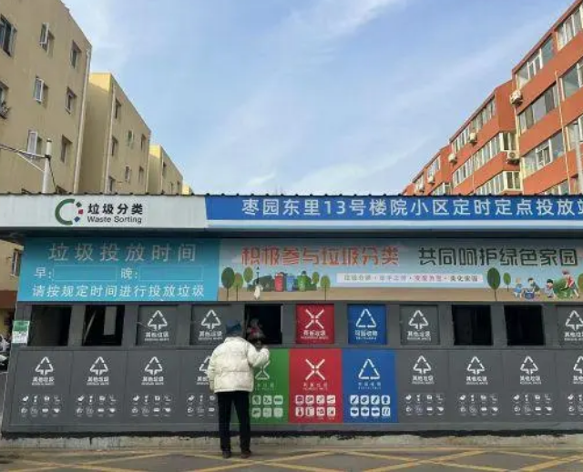 位于北京市大興區(qū)的棗園東里社區(qū)13號樓院小區(qū)在垃圾分類桶站進(jìn)行了全面升級改造后,執(zhí)行源頭分類—定點(diǎn)投放—積分回饋模式,旨在加強(qiáng)小區(qū)生活垃圾分類管理,提升居民自主分類率,并美化小區(qū)環(huán)境。這一舉措不僅解決了垃圾滿冒、異味大、蠅蚊多等環(huán)境問題,更為社區(qū)垃圾分類工作的推進(jìn)樹立了新標(biāo)桿。
