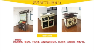 ????這個智能垃圾桶非常節(jié)能環(huán)保,它的頂部可以利用太陽能蓄電,一旦有人靠近它,它的投放口會自動打開,方便投放垃圾。除了標識清楚,自動感應,這種智能化垃圾桶還有另一大功能,就是自動報警,垃圾桶被投滿之后,就會自動向后臺發(fā)出“漫溢報警”,并且準確定位到垃圾桶的具體位置。