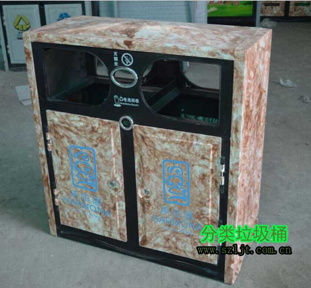 ? ? XFZ-A115玻璃鋼仿大理石酒店垃圾桶規(guī)格875*400*1035,是經(jīng)過市場考驗(yàn),獲得眾多客戶好評的一款熱銷玻璃鋼垃圾桶,外形采用經(jīng)典傳統(tǒng)的方形,簡潔工整。桶門上的絲印標(biāo)志可以隨客戶需求更換,桶身結(jié)構(gòu)采用雙分類結(jié)構(gòu),契合國內(nèi)主流的垃圾分類習(xí)慣,能將垃圾收集與垃圾分類政策最優(yōu)貫徹落實(shí)。