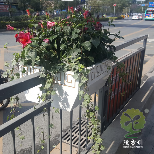 二、市政道路護欄烤漆不銹鋼花箱的擺放位置