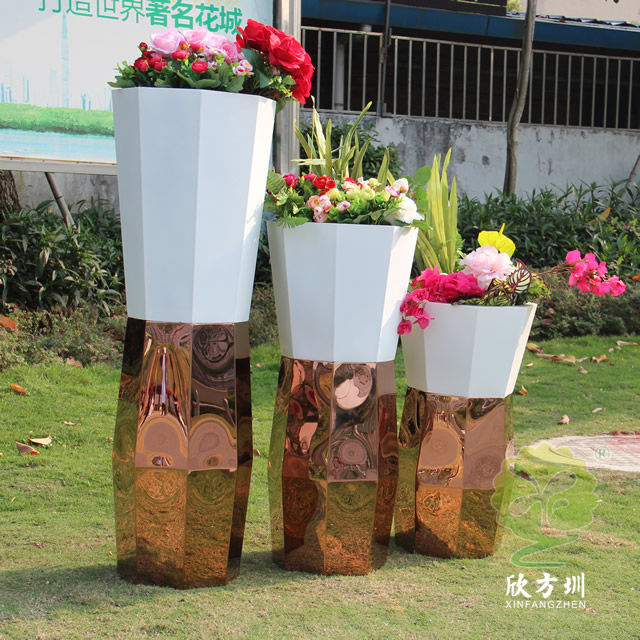 一、菱形噴塑白色玫瑰金不銹鋼花盆組合的優點有哪些