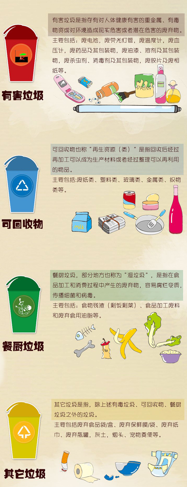 2017年3月,《國務院辦公廳關于轉發國家發展改革委住房城鄉建設部生活垃圾分類制度實施方案的通知》(國辦發〔2017〕26號),明確提出必須將有害垃圾作為強制分類類別之一,推行垃圾強制分類,到2020年底前,在北京等重點城市的公共機構和相關企業實現生活垃圾強制分類。國安社區公共服務平臺為各位帶來最新的生活垃圾分類的方法,讓我們一起科學分類,維護健康美好的生活居住環境。生活垃圾分類對我們來說不僅僅只是一個口號,只要我們用心,其實從生活中入手,將生活垃圾合理分類、回收利用,就是最好的行動。