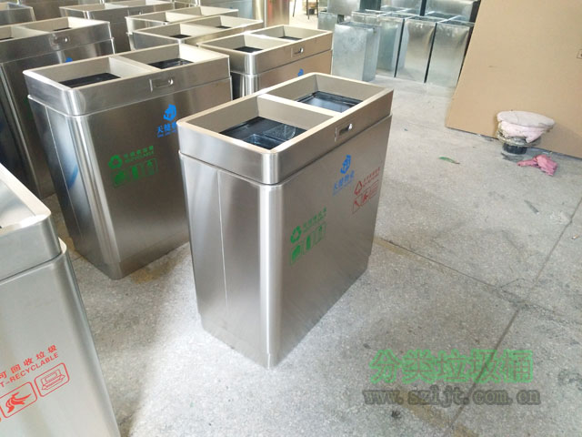 內桶:鍍鋅內桶; 形狀:方形; 顏色:不銹鋼本色; 分類:雙分類; 應用場所:室內戶外