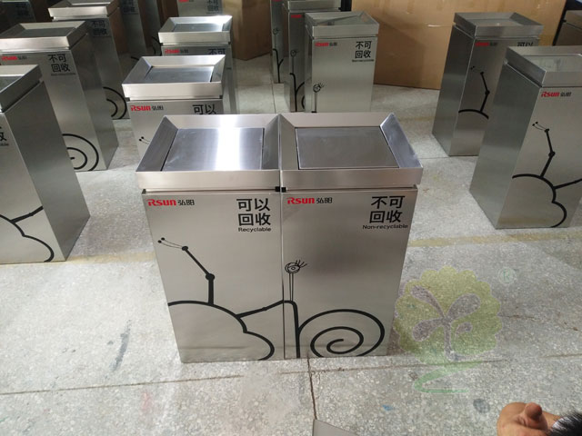內桶:鍍鋅內桶; 形狀:直角方形; 顏色:不銹鋼本色; 分類:雙/單分類; 應用場所:室內戶外多場景