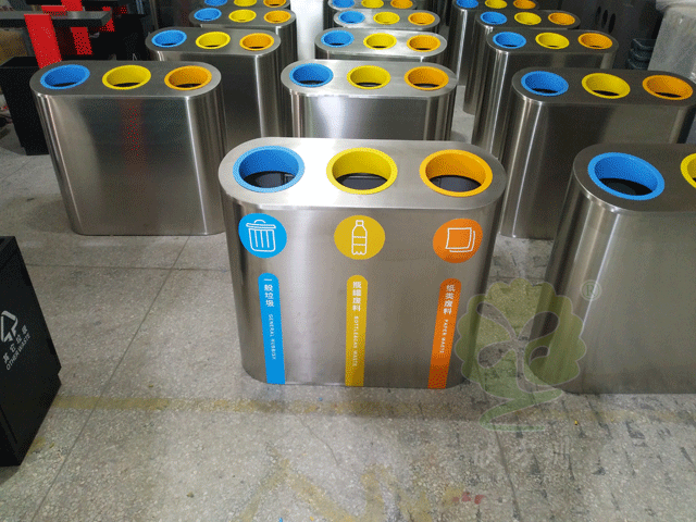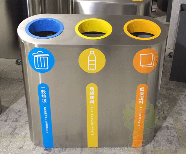 這款垃圾桶采用三分類形式,分別收集一般垃圾,瓶罐廢料,紙類廢料,瓶罐和紙類是具有重大回收價值的可回收垃圾,對它們進行分類回收,可以節(jié)約資源,保護環(huán)境,有利于國家綠色環(huán)保事業(yè)的推進。據了解,一頓塑料瓶可以可以回收0.75噸原料,一頓廢紙回收可以生產成品紙0.8噸,相當于少砍伐20棵樹齡為30年的樹木。每個人都有義務做好垃圾分類,為自己的綠色家園做出點點滴滴的貢獻。