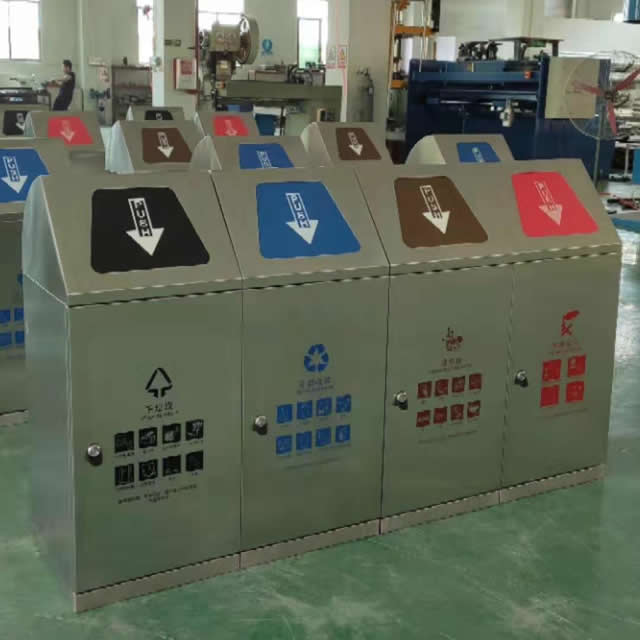大型有蓋四分類不銹鋼垃圾桶的優點: