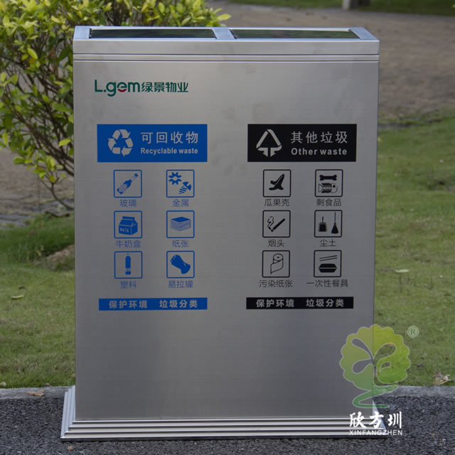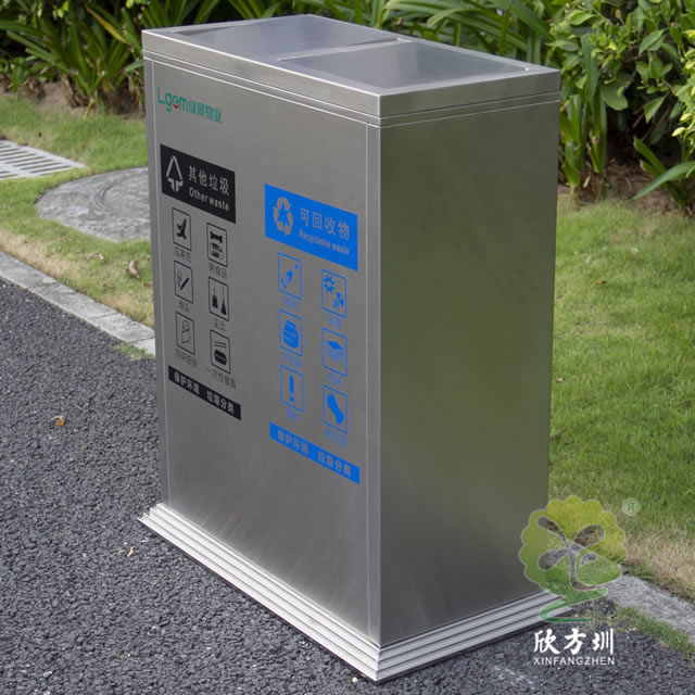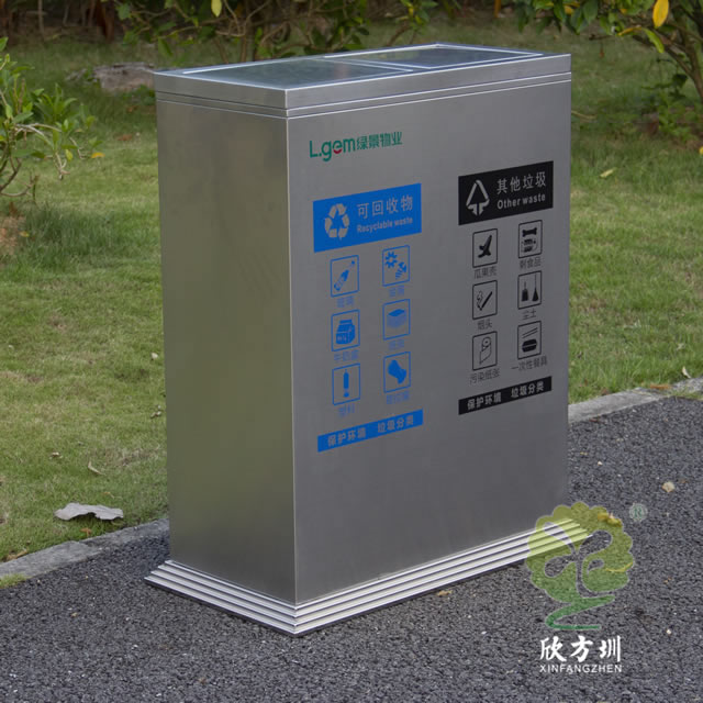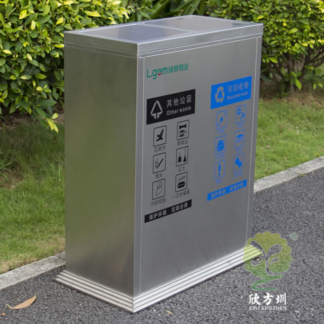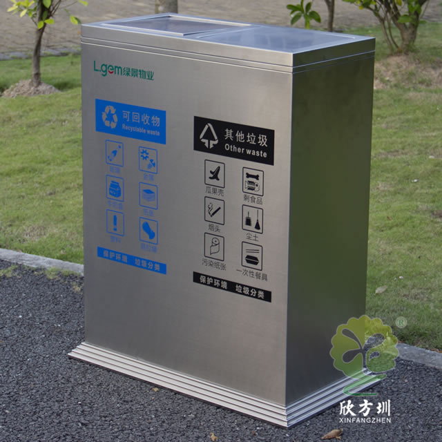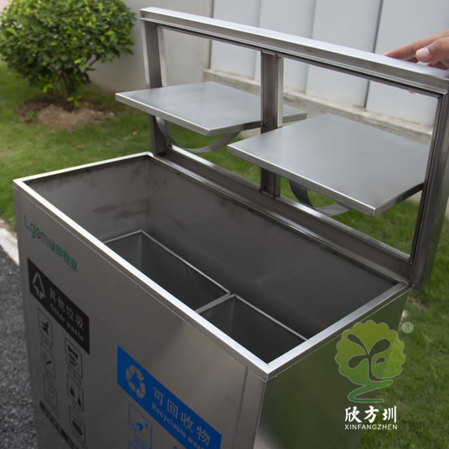 室內兩分類搖蓋式不銹鋼垃圾桶采用201#,202#,304#優質不銹鋼材料模壓成型,堅固耐用,不易破損;耐火安全,抗高低溫,適合各種惡劣氣候條件;金屬亮澤,高雅美觀,廣泛適用于各種機場、商場高檔場所;內外表面光潔,減少垃圾殘留,易于清潔;配置鍍鋅板內桶,便于垃圾清倒;激光切割開料,尺寸精準,投口無縫焊接成型,打磨拋光處理圓滑不割手,欣方圳不銹鋼分類垃圾桶制作師傅有著多年經驗的熟手,每一道環節工藝成熟,質量可靠,確保客戶如期交付驗收。