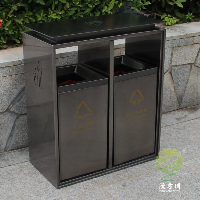 電鍍黑鈦不銹鋼分類果皮箱產(chǎn)品說(shuō)明: