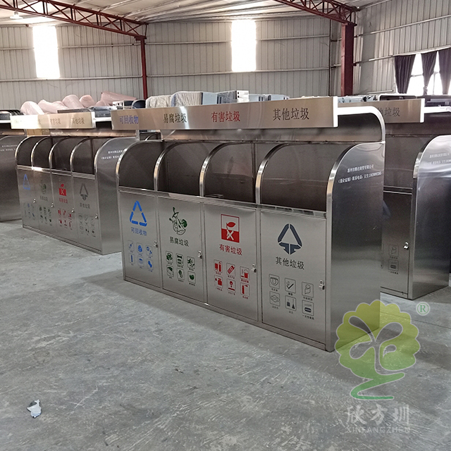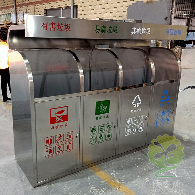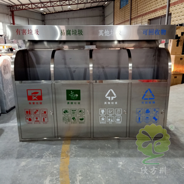戶外小區大容量四分類不銹鋼垃圾箱型號:C707-2,采用201#,202#,304#優質不銹鋼材料模壓成型,堅固耐用,不易破損;耐火安全,抗高低溫,適合各種惡劣氣候條件;金屬亮澤,高雅美觀,廣泛適用于各種機場、商場高檔場所;內外表面光潔,減少垃圾殘留,易于清潔;配置鍍鋅板內桶,便于垃圾清倒;激光切割開料,尺寸精準,投口無縫焊接成型,打磨拋光處理圓滑不割手,欣方圳不銹鋼分類垃圾桶制作師傅有著多年經驗的熟手,每一道環節工藝成熟,質量可靠,確??蛻羧缙诮桓厄炇?。