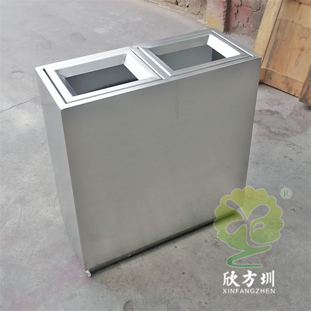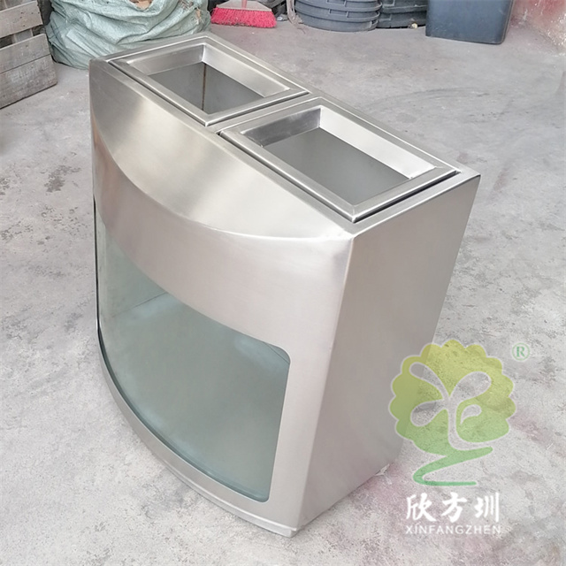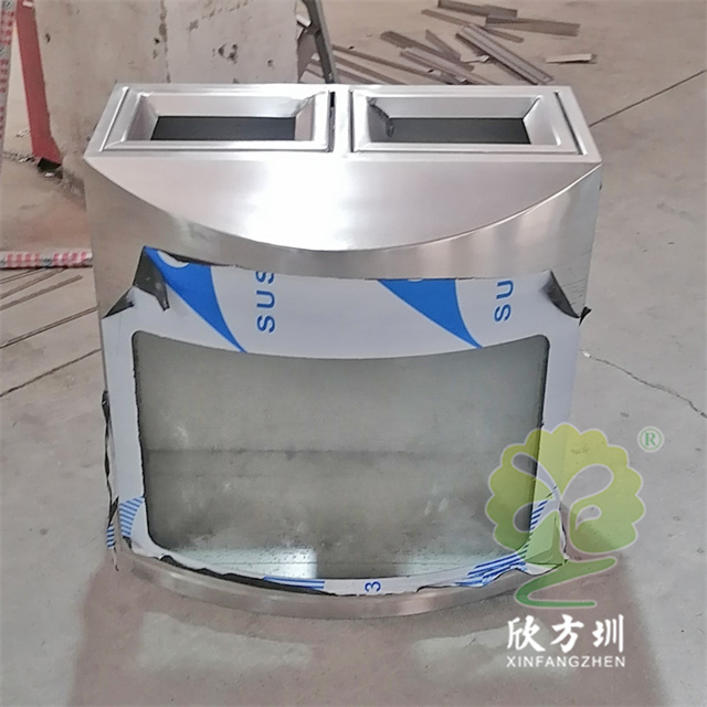 地鐵站透明防爆不銹鋼分類連體垃圾桶采用了304不銹鋼板2.0mm厚足(1.8mm厚),加6mm+6夾膠透明鋼化玻璃,整體不銹鋼本色,表面可以使用分類圖標及地鐵標識,直投口兩分類設計,可以掛兩個透明垃圾袋,可以定制單筒或三分類四分類,一般地鐵站垃圾桶穿上都會穿“透明裝”,就是采用亞克力板、鋼化玻璃或者鏤空,倡議廣大市民乘客積極參與垃圾分類行動,養成垃圾分類良好習慣,共同創造和諧美好的出行環境和綠色生態的城市空間。