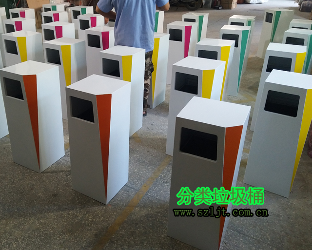 時尚高檔鋼制垃圾桶采用優(yōu)質(zhì)冷軋鋼材料經(jīng)激光切割剪鈑下料、折彎、沖壓、焊接、打磨、等工藝:表面經(jīng)過除油、噴砂防銹處理后,再進(jìn)行酸洗磷化處理;表面清理干燥后整體進(jìn)行靜電噴涂或烤漆處理,靜電噴涂是經(jīng)過流水線高溫固化爐固化后再出爐冷卻,加工后的塑粉附著力強(qiáng),不易剝落,這樣防銹效果才會好。