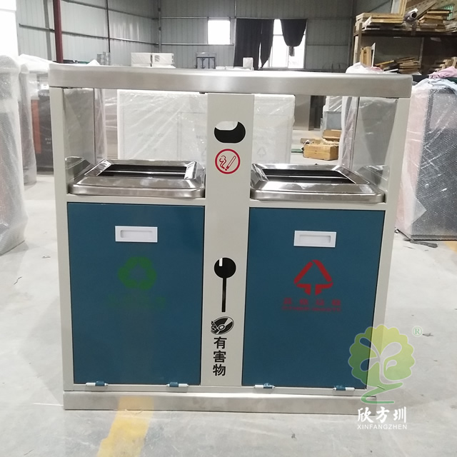 戶外小區(qū)雙分類鋼板垃圾箱產(chǎn)品詳情: |
