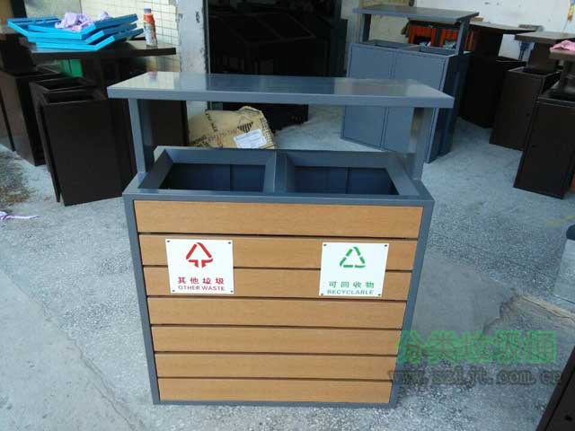 廠家定制鋼木分類垃圾桶長(zhǎng)900mm,寬400mm,高950mm,桶身采用優(yōu)質(zhì)進(jìn)口防腐木、進(jìn)口山樟木或水曲柳制作,可抑制生物、微生物的寄生、繁殖與侵蝕,延長(zhǎng)木材在戶外環(huán)境中的使用壽命。表面經(jīng)過(guò)除蟲(chóng),防蟻,防腐,烘干等專業(yè)處理后加工成型,經(jīng)久耐用,防腐美觀。桶蓋/內(nèi)膽采用FRP玻璃鋼材料制造,具有防腐、防生銹、易清潔等特點(diǎn)。底座采用玻璃鋼纖維制作,從根本上解決了防腐、防盜、生銹的問(wèn)題,產(chǎn)品在戶外的使用壽命大大增強(qiáng)。此款垃圾桶無(wú)論是從外觀,性能還是環(huán)保方面來(lái)講都十分優(yōu)越,尤其適合擺放在花園,公園,小區(qū),學(xué)校,街道,游樂(lè)園等場(chǎng)所,備受客戶青睞。