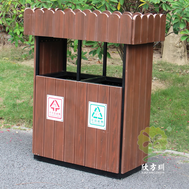 戶外防腐木帶花箱分類垃圾桶900*400*1060mm,G138,桶身采用優(yōu)質(zhì)進(jìn)口防腐木、進(jìn)口山樟木或水曲柳制作,可抑制生物、微生物的寄生、繁殖與侵蝕,延長木材在戶外環(huán)境中的使用壽命。表面經(jīng)過除蟲,防蟻,防腐,烘干等專業(yè)處理后加工成型,經(jīng)久耐用,防腐美觀。桶蓋/內(nèi)膽采用FRP玻璃鋼材料制造,具有防腐、防生銹、易清潔等特點。底座采用玻璃鋼纖維制作,從根本上解決了防腐、防盜、生銹的問題,產(chǎn)品在戶外的使用壽命大大增強(qiáng)。此款垃圾桶無論是從外觀,性能還是環(huán)保方面來講都十分優(yōu)越,尤其適合擺放在花園,公園,小區(qū),學(xué)校,街道,游樂園等場所,備受客戶青睞。