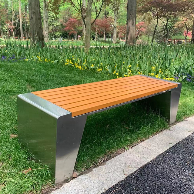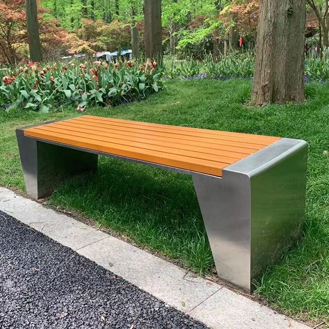 戶外公園景區(qū)塑木不銹鋼休閑椅