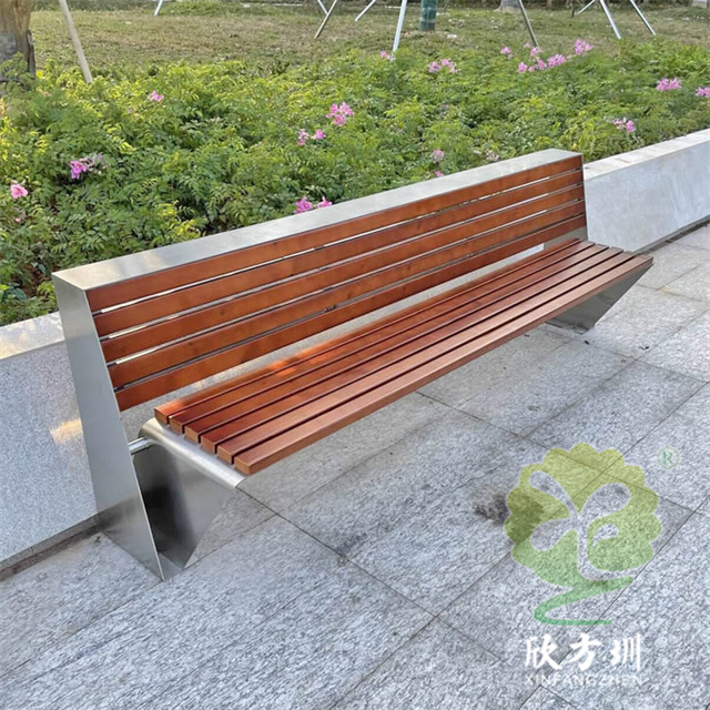 不銹鋼座椅公園椅:整體外觀和普通的公園椅座椅一樣,但是該公園椅座椅的椅條由防腐木換成了等長的不銹鋼鋼柱,帶有靠背設(shè)計,整體框架采用一體化焊接技術(shù),美觀又耐用。